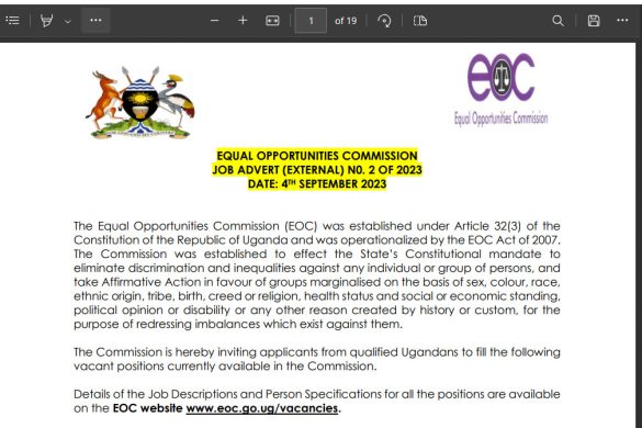 JOB ADVERT (EXTERNAL) N0. 2 OF 2023